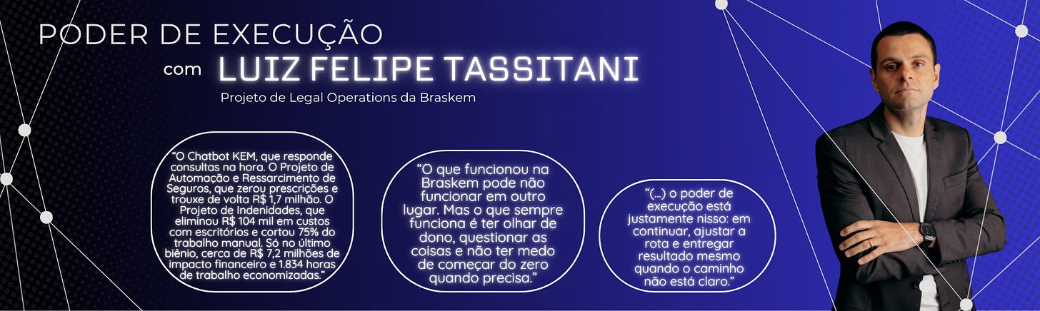Olha, essa jornada provou uma coisa: não existe fórmula mágica. Cada empresa tem sua bagunça, suas urgências, sua cultura. O que funcionou na Braskem pode não funcionar em outro lugar. Mas o que sempre funciona é ter olhar de dono, questionar as coisas e não ter medo de começar do zero quando precisa. Teve coisa que não deu certo? Claro. Teve reunião que terminou sem solução? Várias. Mas o poder de execução está justamente nisso: em continuar, ajustar a rota e entregar resultado mesmo quando o caminho não está claro. No fim, transformar um jurídico complexo exige tecnologia, sim - mas exige muito mais gente disposta a arregaçar as mangas e fazer acontecer.” – Luiz Felipe Tassitani